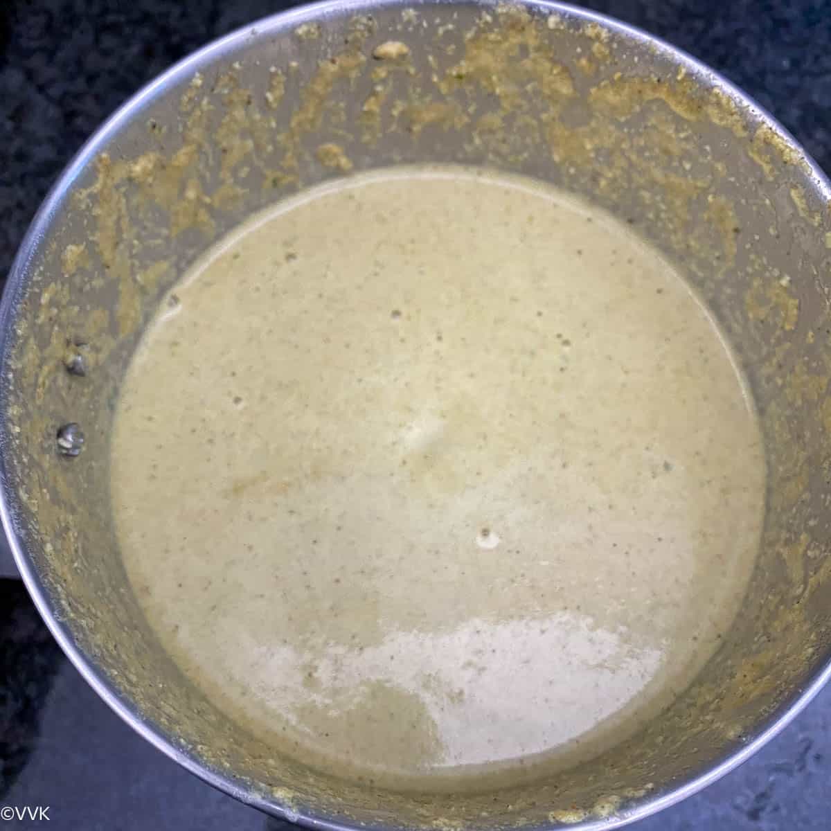 - Grind it into a smooth paste by adding one cup of water and set the paste aside.
