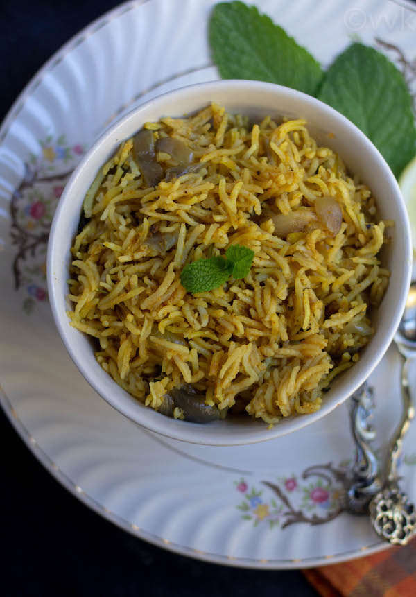 Onion Biryani – A simple biryani loaded with onions, shallots and with a subtle flavor of coconut made in the pressure cooker. Check out the onion biryani recipe with step-wise pictures.