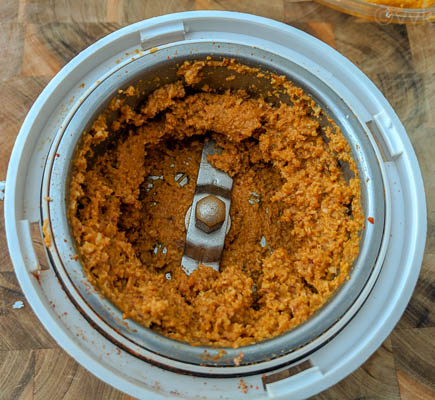 - Grind all the ingredients given under "to grind" by 3 tbsps of water into a coarse paste and set it aside.