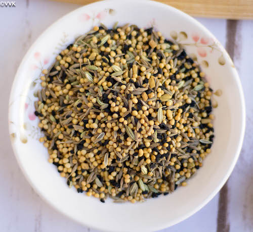 So what’s this panch phoron mix? It’s blend of 5 seeds or spices. It is popularly called as Bengali 5 spice mix too. The spices are seeds here, not the powder.