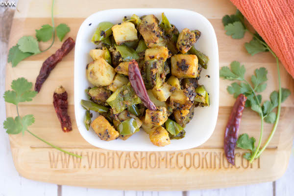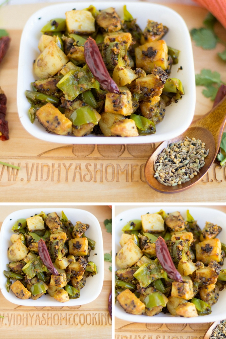 I cannot call this as a traditional and authentic Bengali recipe. In fact, I am still getting acquired to mustard oil, so for this recipe, I went with regular sunflower oil. I just used panch phoron mix and combined it along with our favorite vegetable. We personally love the combination of potato and capsicum.