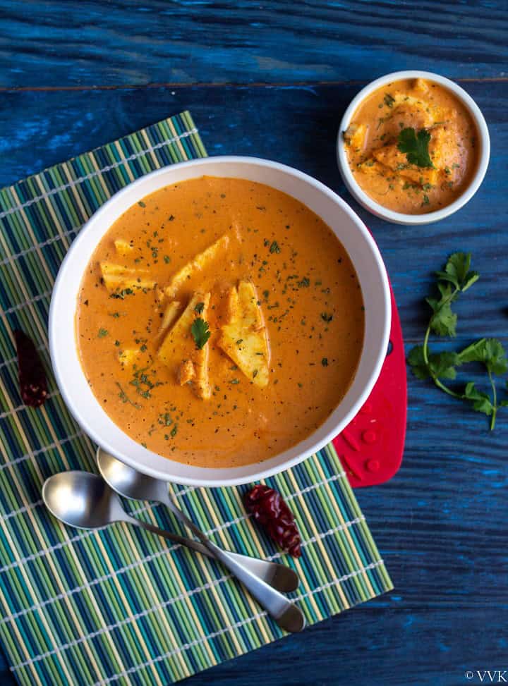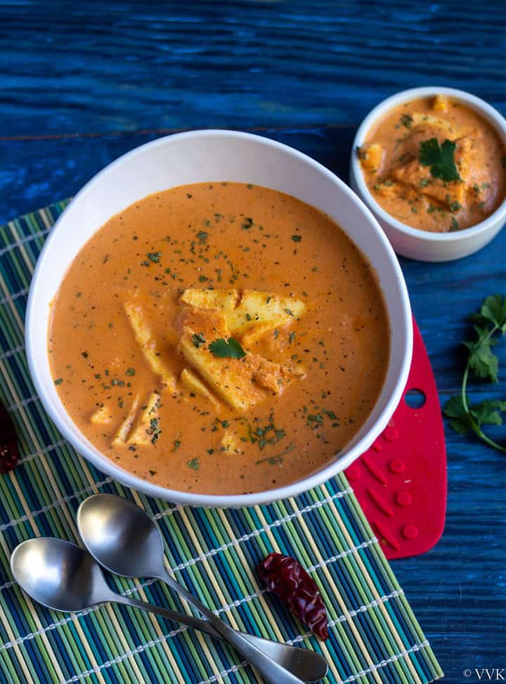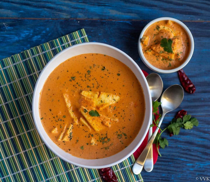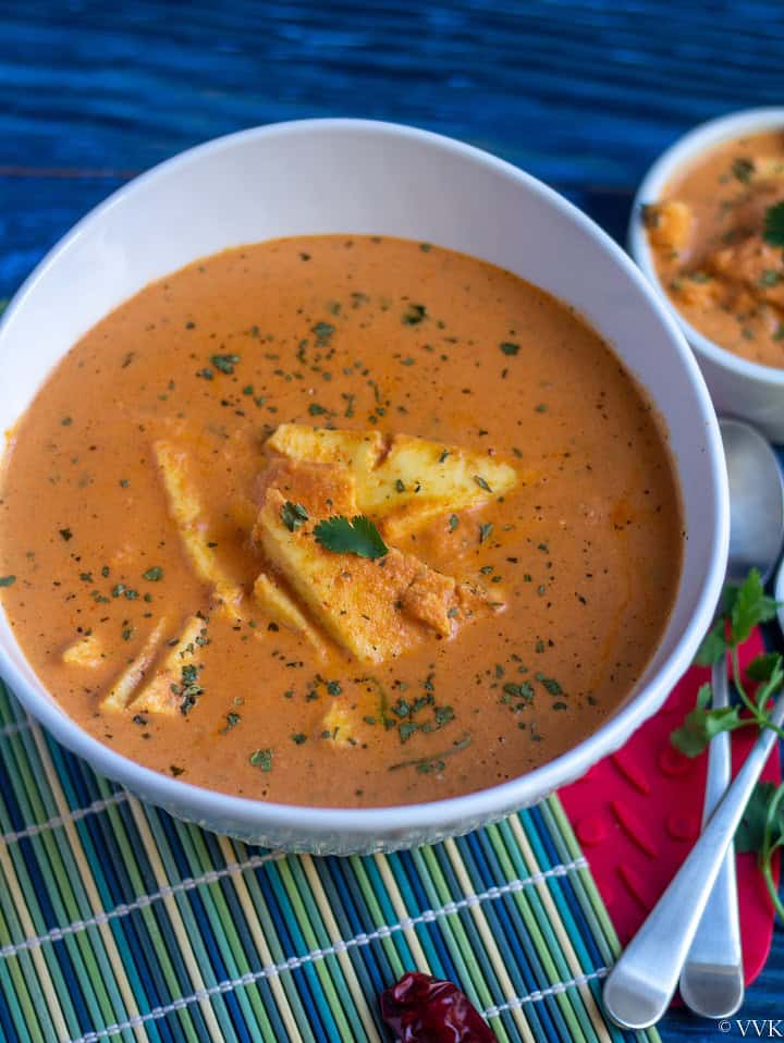 This paneer butter masala is super creamy with subtle sweetness, just like how you get in the restaurants. The tomato paste/puree and the heavy cream adds that magic touch.
