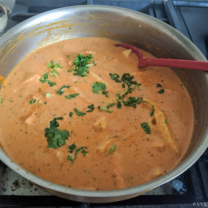 Cashews play a significant role in this paneer gravy, and I have included cashews in my paneer makhani biryani as well. But for this recipe, I did not include any nuts.
