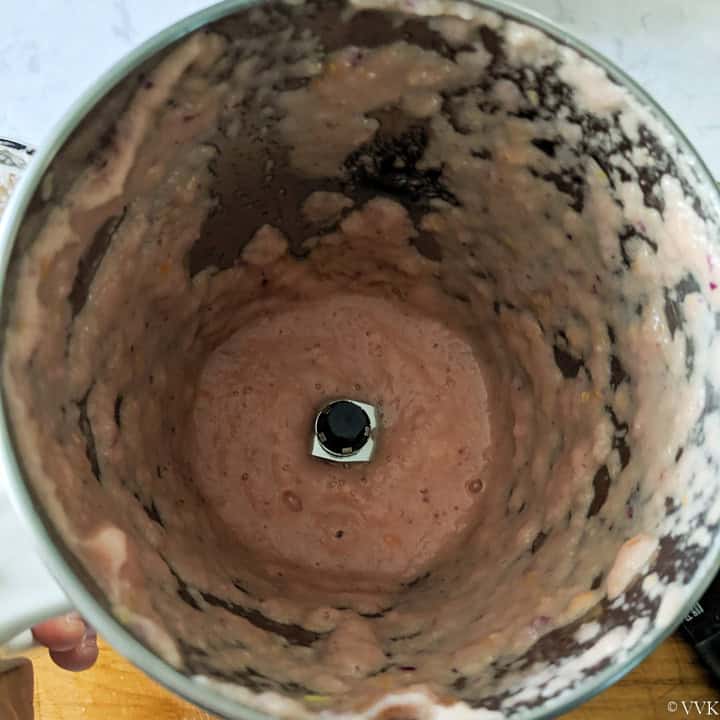 - In a mixer jar, add the chopped onion, tomato, and the ginger-garlic paste as well. Blend it into a smooth paste. No need to add any water.
