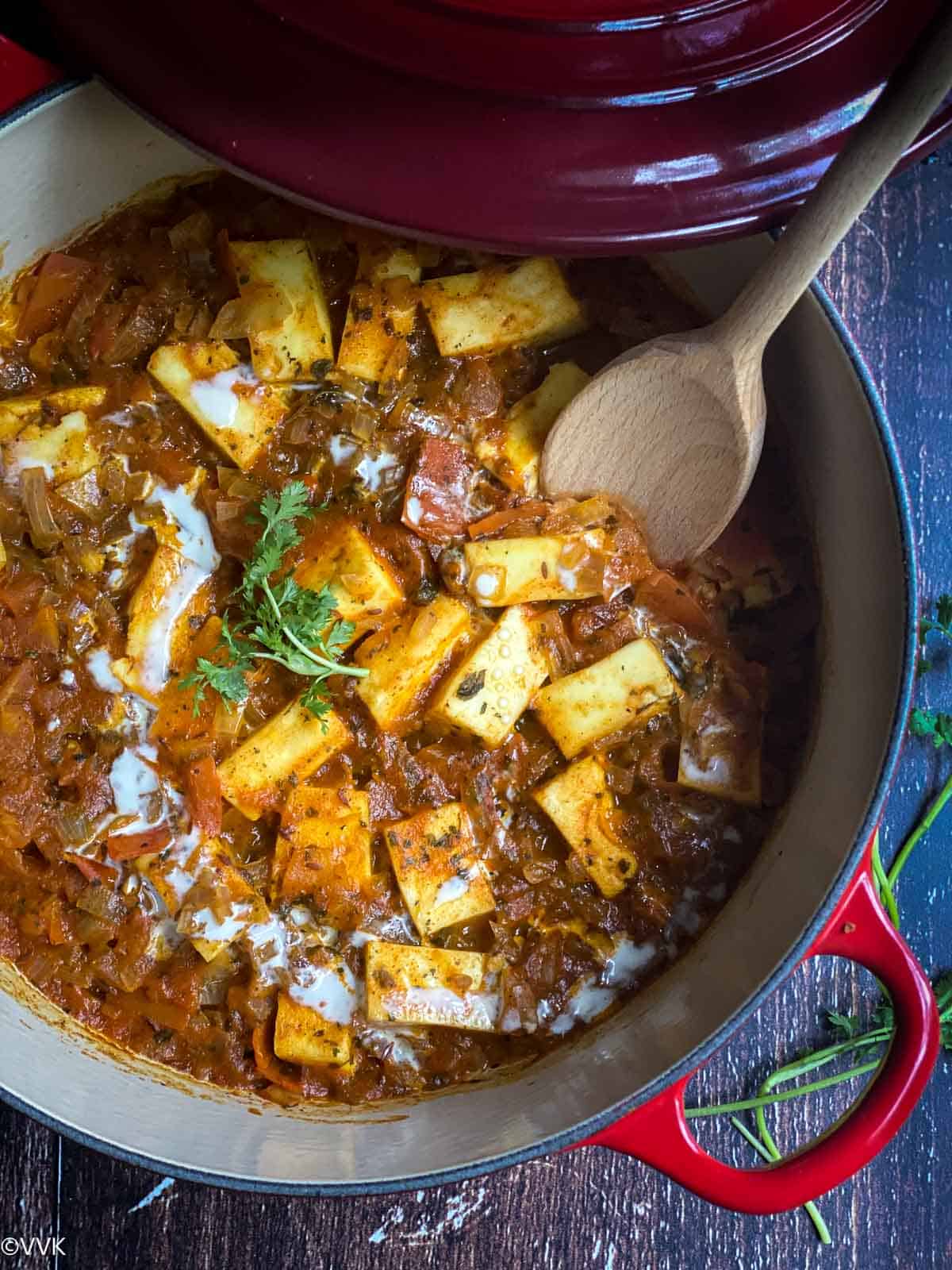 Note – Even though I have used Kolhapuri masala, this is not authentic curry. I took the liberty and used coconut oil, cream, and dried fenugreek leaves. It’s far off from the authentic Kolhapuri gravy. That’s why I am calling this paneer curry with Kolhapuri masala.