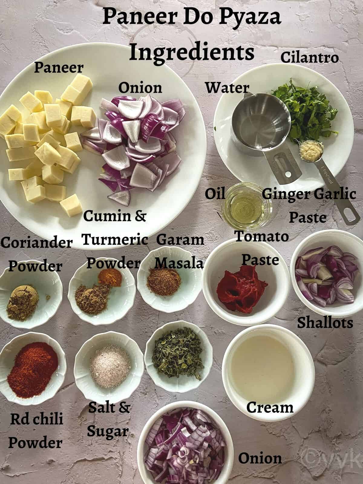 We are using paneer and cream in this recipe. Instead, you can use tofu or mushroom in place of paneer, and instead of cream, you can use cashew cream, cashew paste, or hemp heart paste. The cream is not mandatory, and you can skip it. You can make a similar curry with okra, popularly known as bhindi do pyaza.