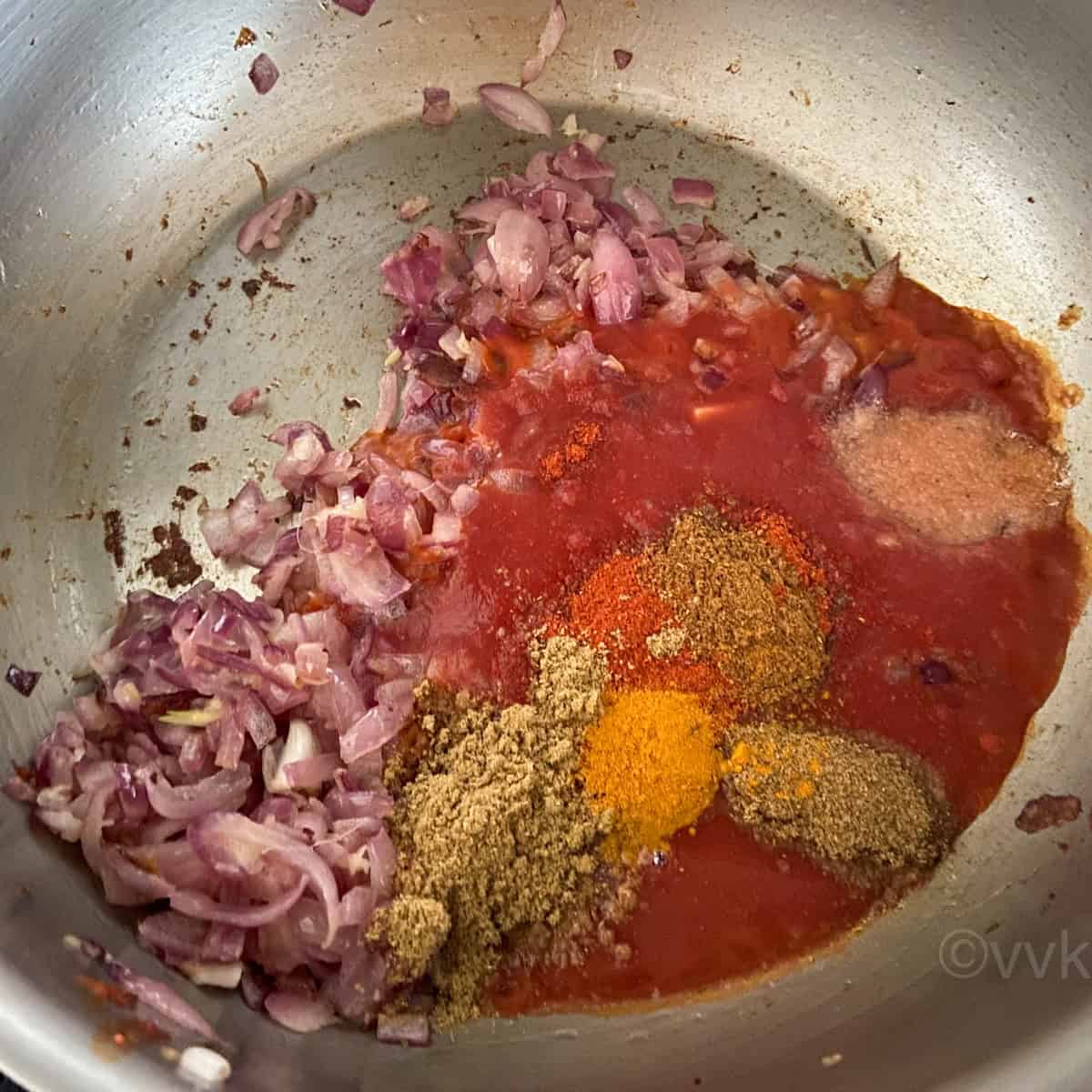 Tomato paste: While you can use fresh tomatoes, I went with tomato paste just for convenience’s sake. It also adds that nice color to the gravy. You can use tomato puree or fresh tomatoes too. Refer notes for the tomato puree/tomato measure.