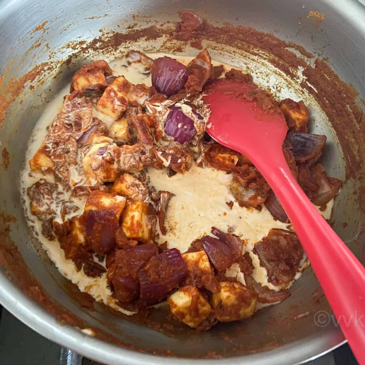 - My paneer do pyaza is not runny gravy curry. You can thin down the consistency by adding little extra water or cream.