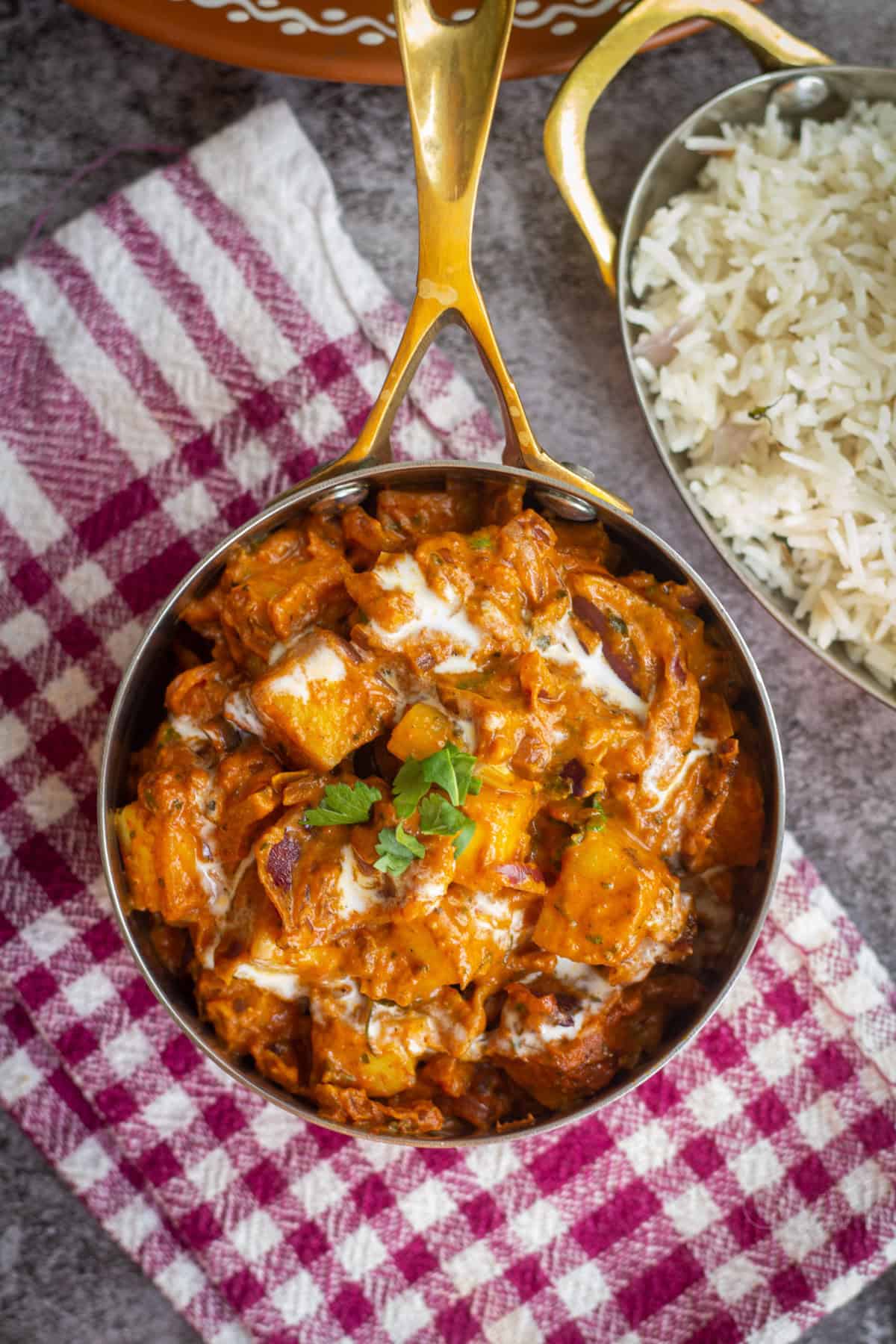 - Serve hot with rice or roti of your choice. You can add one more tbsp of cream on top before serving.