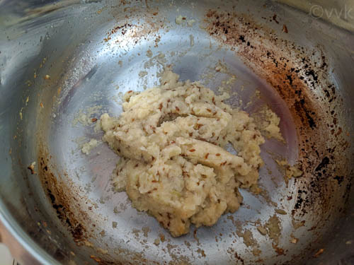 - Then add the cumin seeds, onion paste, and the ginger-garlic paste.