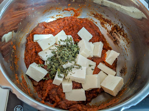 - Then add the chopped paneer and kasoori methi. Mix well.