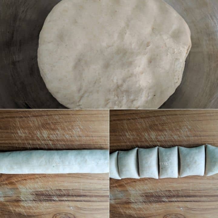 - Divide the prepared dough into equal parts and roll them into smooth balls. I divided my dough into 6 balls.
