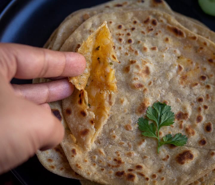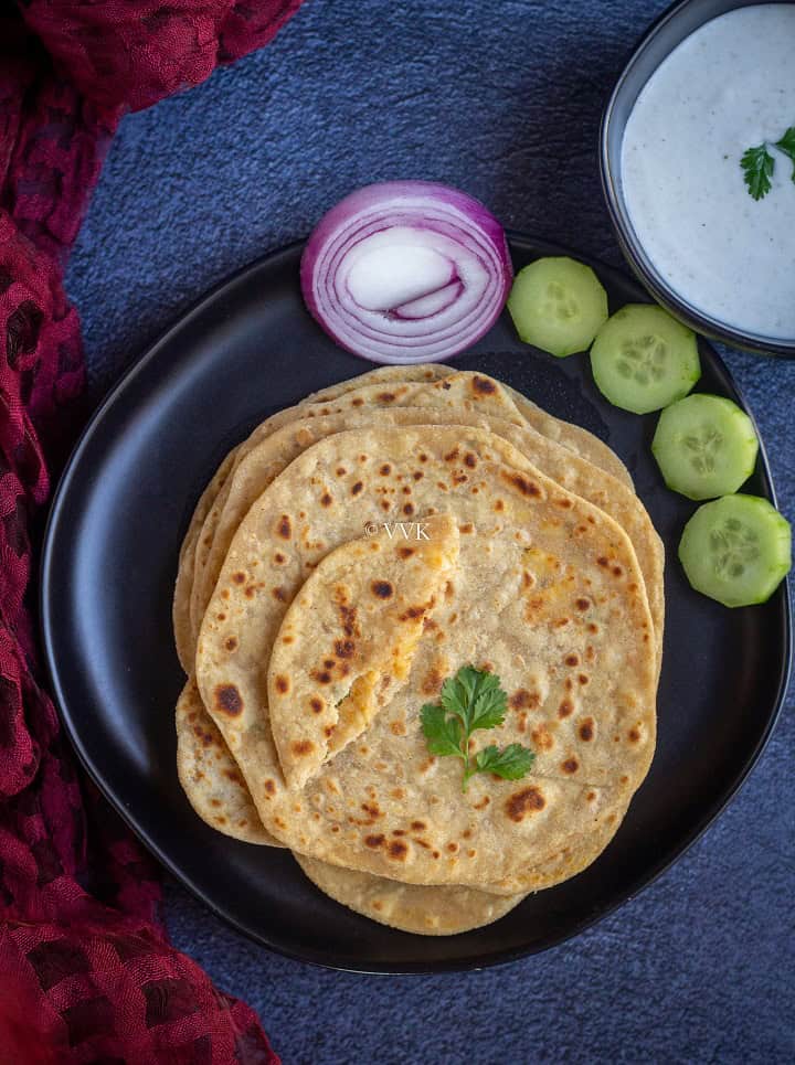More non-stuffed parathas – If you are looking non-stuffed paratha recipes, do check out my zucchini thepla recipe, broccoli paratha recipe and mooli/radish paratha recipe.