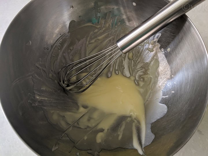 - Using a hand whisk to mix them nicely until it is frothy and well combined. You can mix it with your hands too.