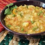 - Do not add more than 1 cup of water while making the curry. Mashing the veggies helps to thicken the gravy but don’t add more than the required amount of water.