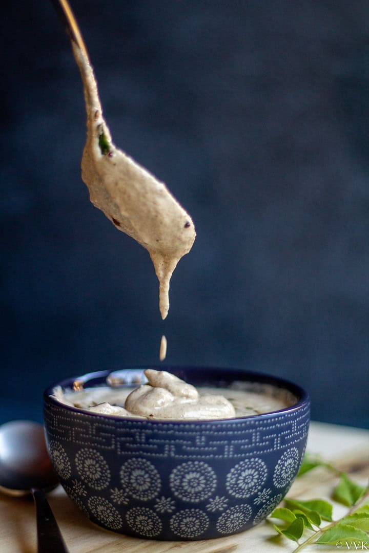 - The chutney thickens as it stays. So before serving, if required, thin down the chutney by adding room-temperature water.