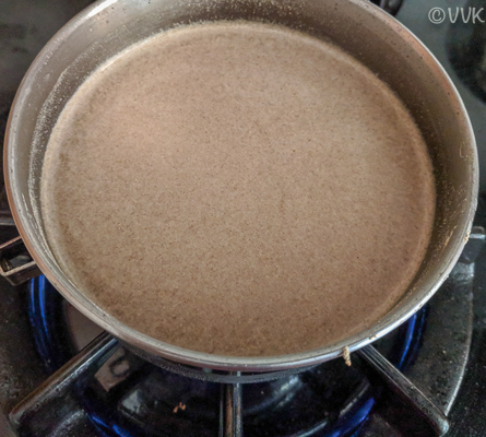 - Now in a medium heat start cooking this bajra-water mixture.