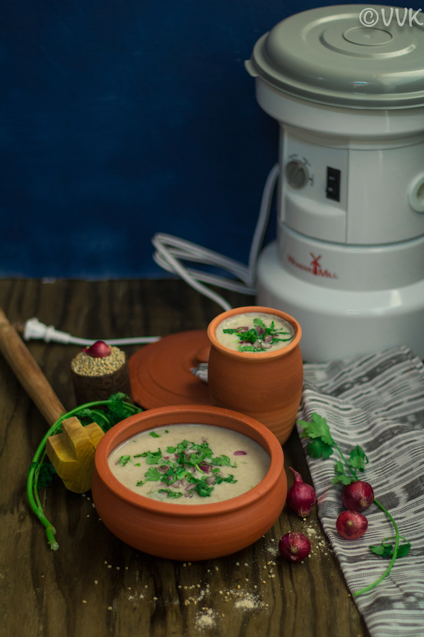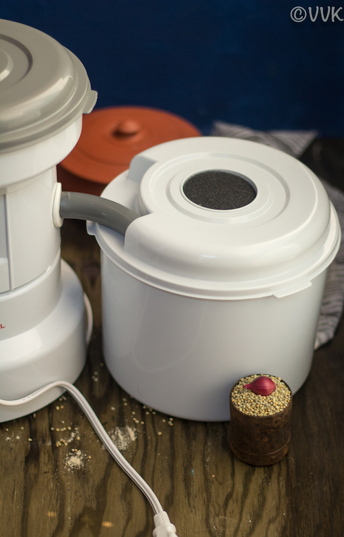 As I mentioned above, I made this gruel from scratch. I roasted the millets and ground them and then made this gruel. Wondering how I ground my millet? – It is with the WonderMill.