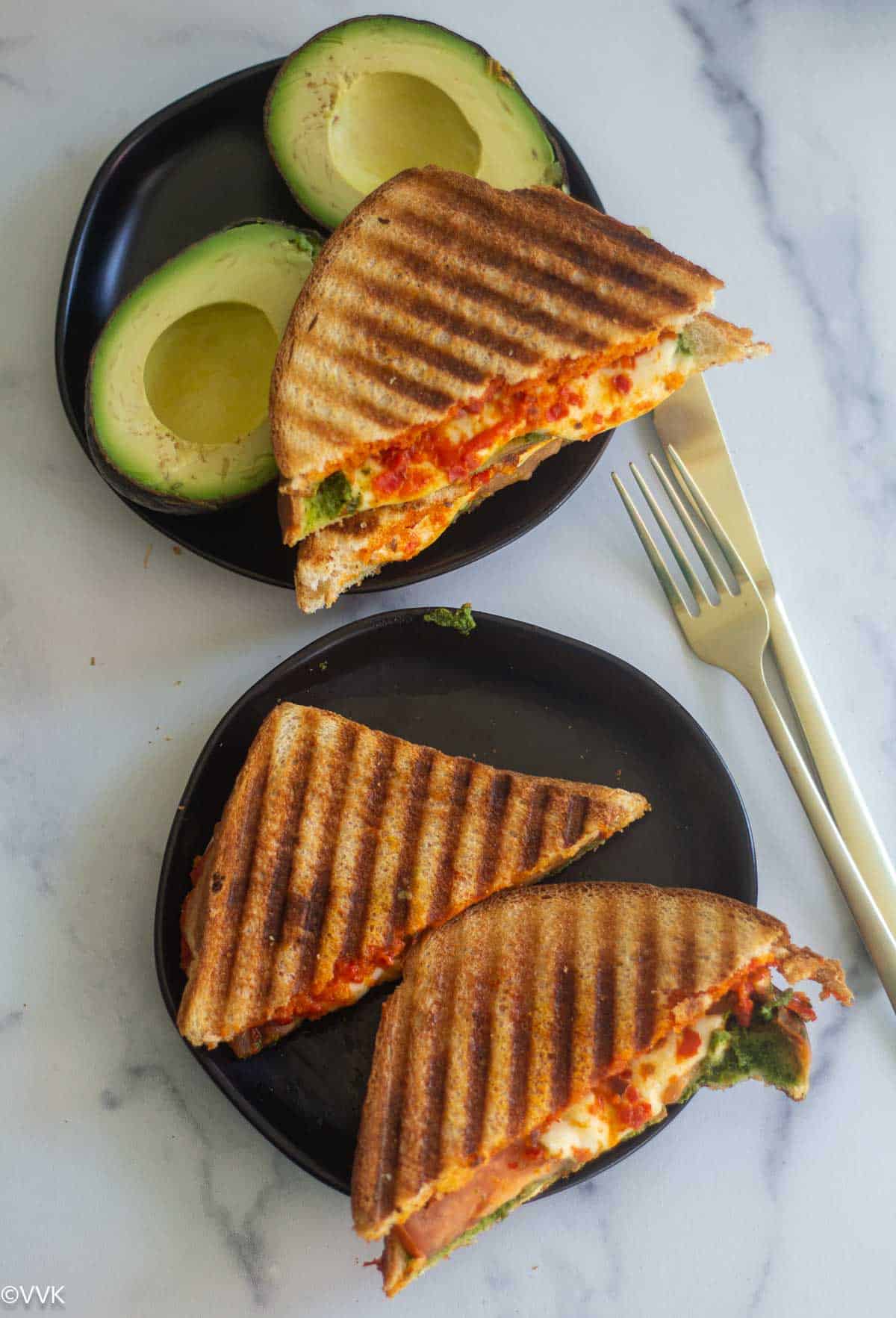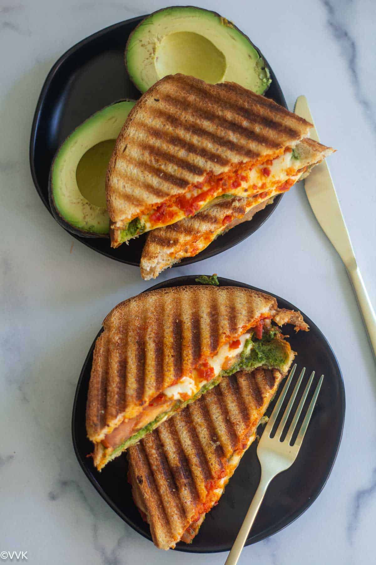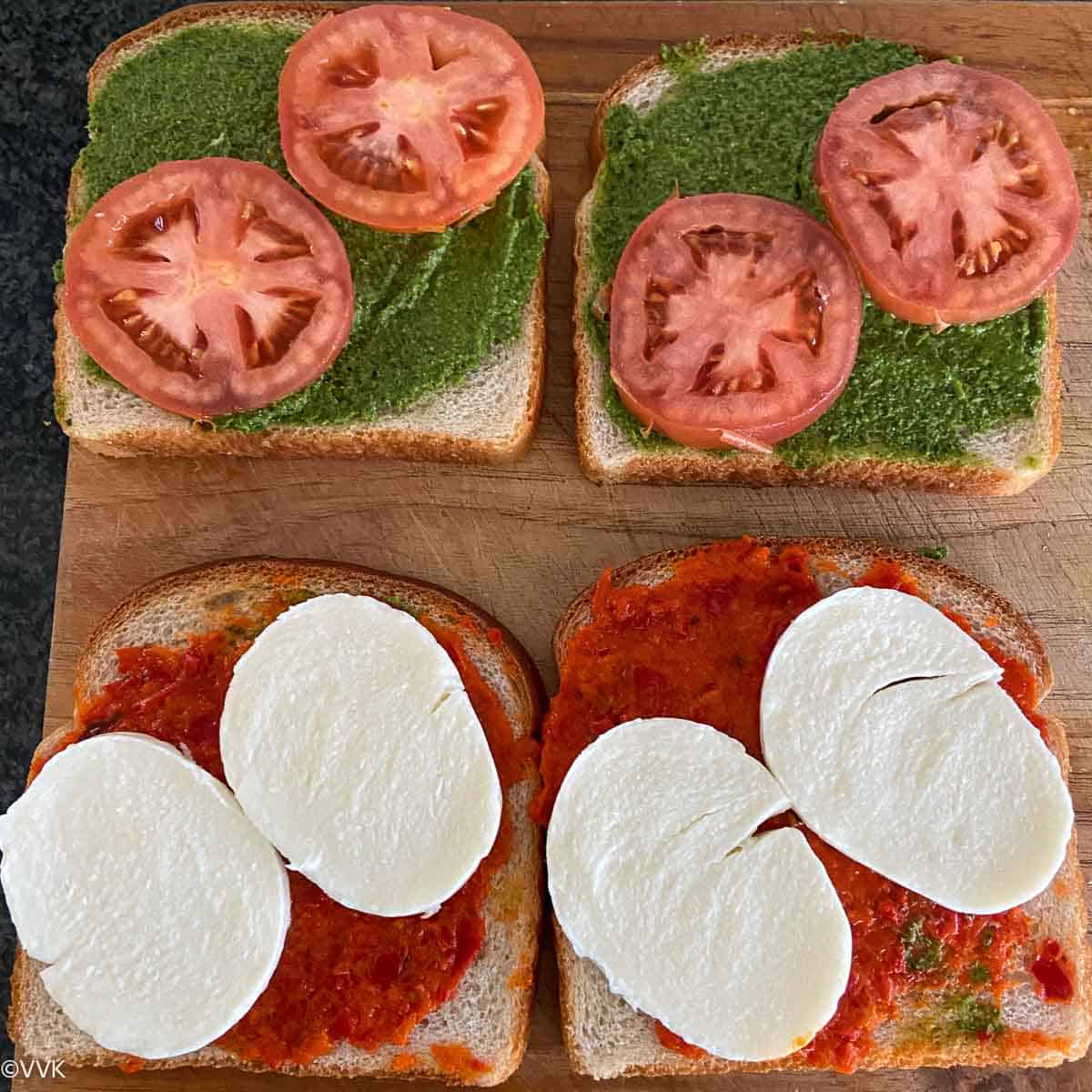 Bread – While ciabatta or focaccia is commonly used for making this panini for my sandwich style, I have used white bread. You can use the bread of your choice (store-bought or homemade) or use focaccia or ciabatta and make it like a panini.
