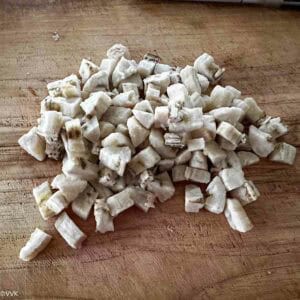 - Raw Banana: You’ll need two firm raw bananas for this recipe. Sometimes, raw bananas have a thick skin with very little flesh inside. So, depending on their size and quantity, adjust the spice levels accordingly.