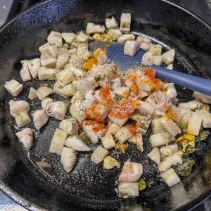 - Spices: This recipe uses more pepper powder than red chili powder, along with a pinch of turmeric powder for color and added depth of flavor.