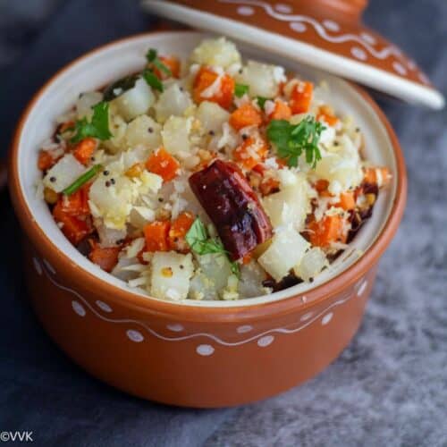 - Tempering: The tempering ingredients include coconut oil, mustard seeds, asafoetida, curry leaves, and garlic cloves for an aromatic and flavorful touch.