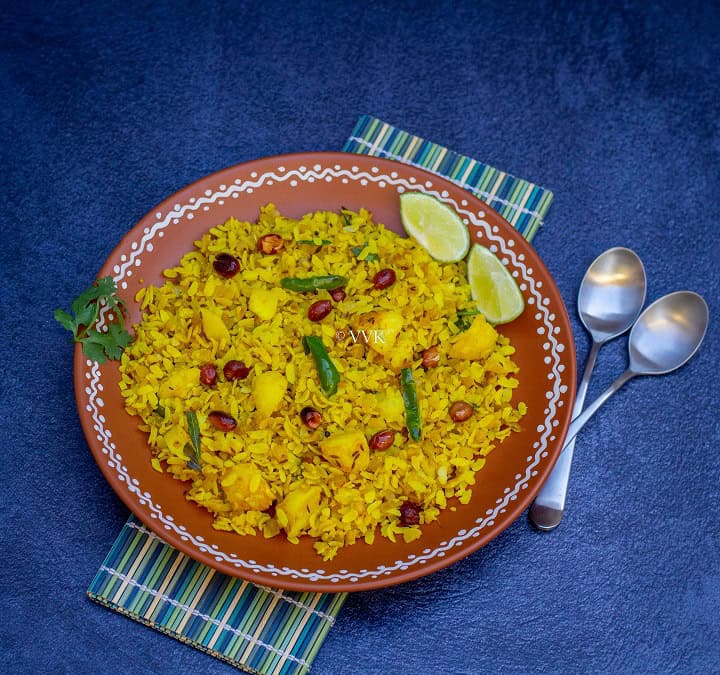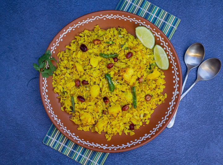 Quick, easy, and flavorful poha recipe. Here is the famous kanda batata poha – flattened rice with onions and potatoes recipe with detailed step-wise pictures.