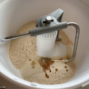 - I prepared my dough in the Nutril mill artiste. You can prepare it with any stand mixer or knead it by hand also. If you are using the stand mixer, follow the instructions accordingly. Add the wheat flour, all-purpose flour, salt, sugar, semolina, and oil.