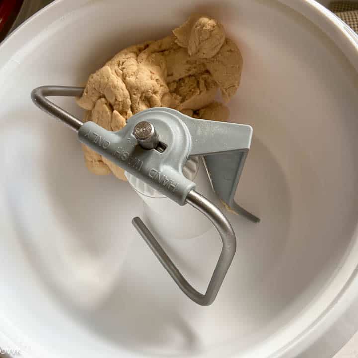 - After kneading, remove the dough from the mixer bowl and gently knead and smoothen it.