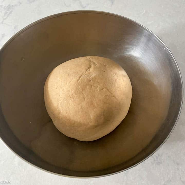 - The water measure differs depending upon the flour quality and variety. So add as required. The dough should be firm and tight. For this recipe, I use Khazana organic wheat flour and Organic choice all-purpose flour. (Not sponsored)