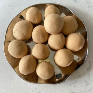 - Divide the prepared dough into equal parts and roll them into smooth balls. I got about 18 balls.