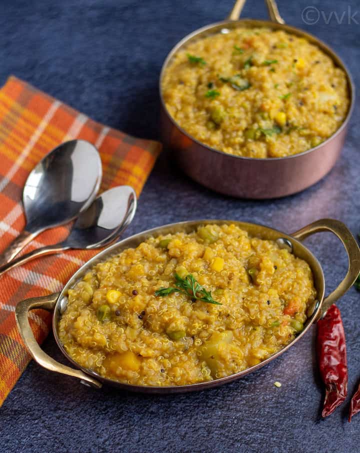 Quick and easy recipe of sambar rice with quinoa made in a stove-top pressure cooker. A perfect recipe for that busy weekday meals!