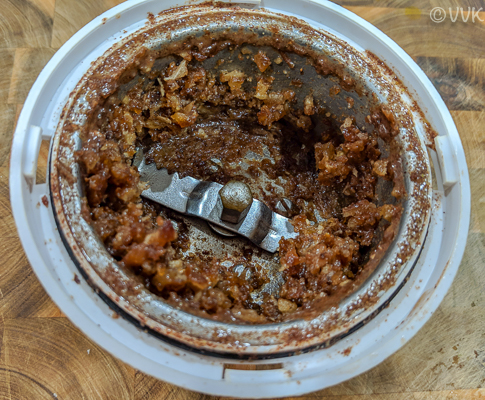 - Pulse it once and then add the water and grind it into a coarse paste.