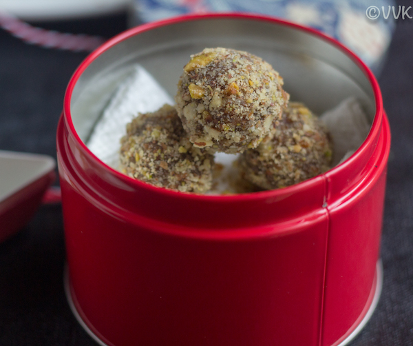 Also, I did not make these as rolls instead made them into balls. Now you can call them as date ladoos too. :-) You can make this in bulk and when you crave for some sweet, pick this, and you won’t regret it. :-)