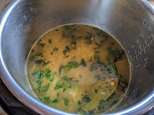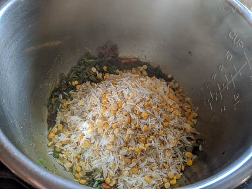 - Make sure you soak the chana dal for at least 45 minutes. If you prefer soft dal, soak in hot water for 45 minutes or soak for 2 hours. If you forgot to soak, then do not use the rice mode. Also, don’t soak the basmati rice for more than 10 minutes. Instead of rice mode, use manual mode and pressure cook for 5 minutes and release the pressure after 5 minutes.