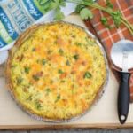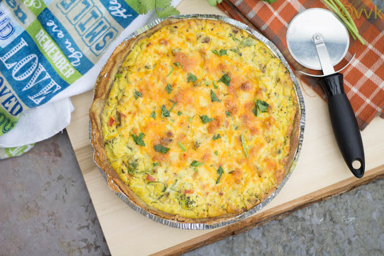 I used regular milk to puree the tofu, but you can replace it with almond milk or soy milk. Instead of regular cheese you can use vegan cheese or skip that entirely. The store bought pie crust had butter in it, but you can prepare homemade pie crust with vegetable shortening.