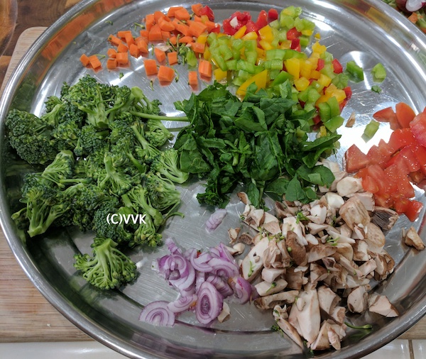- I used shallots tomato, spinach, mushroom, carrot, colored bell peppers