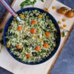 When you have cooked quinoa ready, you can make this salad in less than 15 minutes. It’s just a matter of chopping and mixing. Now coming to the quinoa cooking part, I rely on my Instant Pot for it. You can very well make it in a stove-top pressure cooker or an open pot method as well.