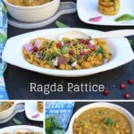 Ragda Pattice or Ragada Pattice or Ragda patties is a popular street food of Maharashtra and Gujarat. As I mentioned yesterday, it is one way of serving aloo tikki or recipe with aloo tikki as the base. Ragda means the white peas curry or the vatana curry, and pattice is a potato cutlet. Basically, it’s potato cutlet topped with the yummy ragda curry.