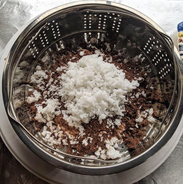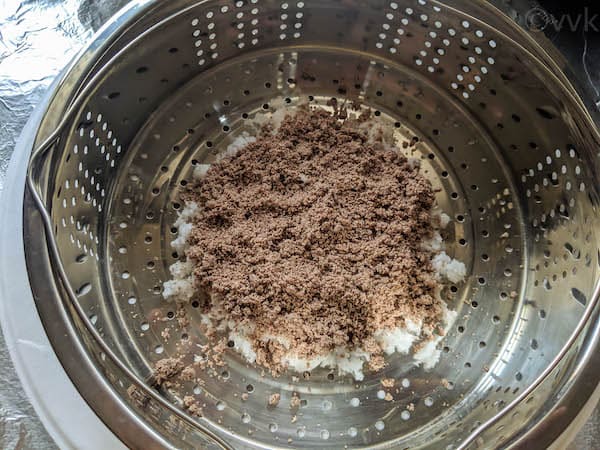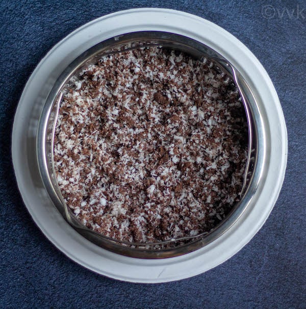 But if you don’t want to buy those, you can steam it in a bowl or even in the idli molds. Of course, you need to add coconut and do the layering before cooking.