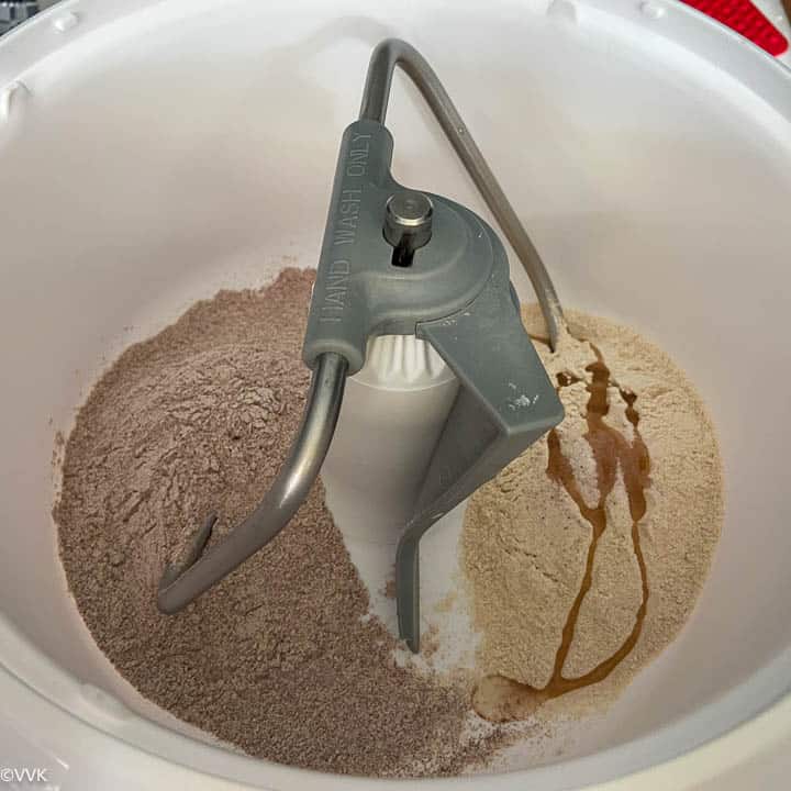 - First, mix it and then slowly add water in small quantity and knead into soft dough. If you are using the stand mixer, follow the instructions accordingly. After kneading, let the dough rest for 15 to 20 minutes. Make sure you cover the dough.
