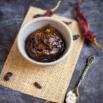 Tamarind paste – I used my homemade tamarind paste for this recipe, but you can use marble-sized tamarind pulp instead of paste. You can soak it along with the raisins and grind it.