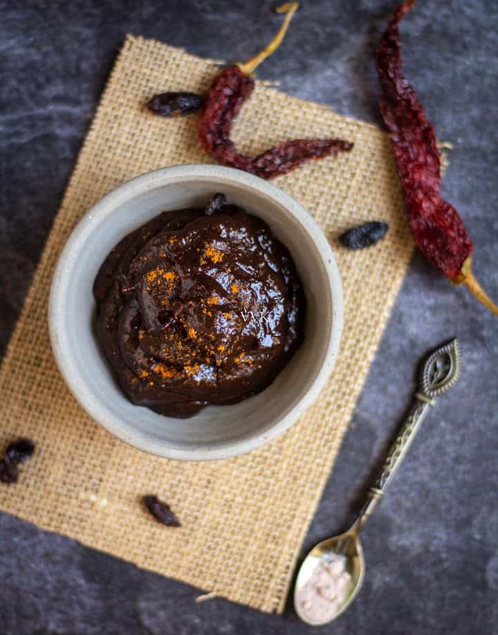 The preparation is very straightforward. You need to soak the raisins in hot water and grind it along with tamarind and spices. Now let’s talk about the ingredients.
