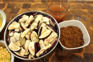 - 300 grams eggplant Italian or traditional brinjals, chopped