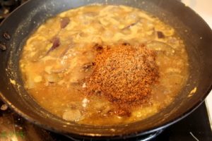 - As the mustard seeds start to splutter, add them to the rasavangi.