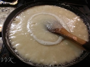 - Let the rava cook for couple of minutes but keep mixing the kesari.