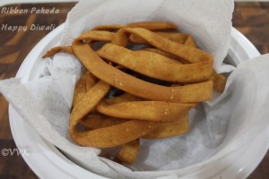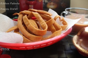 Ribbon pakoda is one of my favorite snacks. Errr I think I should say I love all the savory crunchy snacks. Anyways here is my third tea time snack and a Diwali savory recipe – Ribbon pakoda. It is savory item deep fried in oil using the murukku presser with thin ribbon mold or achu. This is the presser that I used. As I posted a baked savory on tuesday, I going with the fried one now. Its the festive season and I can’t keep skipping the task of frying.