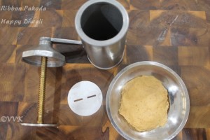 Why it is called ribbon pakoda? In the presser we use the thin small ribbon shaped mold to press this and hence this name. I am not sure if they call this as surul pakoda too. You can press this like murukku and then break them into small pieces. I love this along with rice also. You can buy the presser from amazon too but all the Indian groceries in Bay carry these.