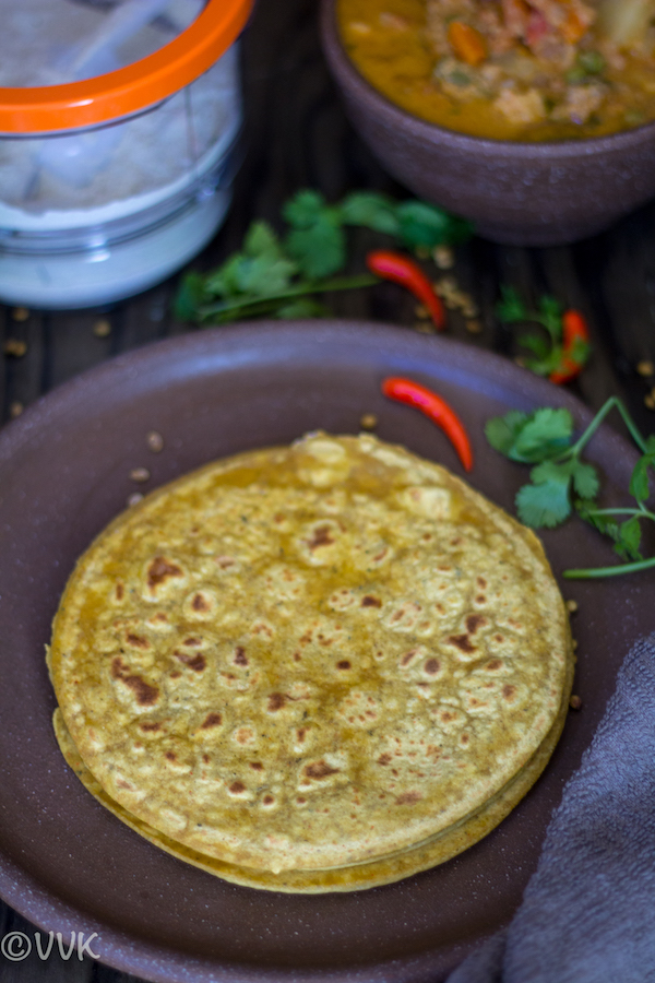 I did apply some ghee on top of the roti, but that’s entirely optional. I served this with mixed vegetable kuruma. It was indeed a wholesome meal.
