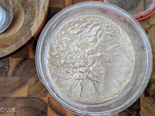 The masala roti recipe with quinoa flour was on my list for a long time. I wanted to try this in Rotimatic and see how the machine adapts to new powder. Guess what, without any issues, the device changed to the flour combinations along with spices and started making perfect masala rotis. I was so surprised and elated to see the rotis coming out. I used 1:1 ratio of wheat flour to quinoa flour. Now coming to the recipe, there is no set measure or set spices to add in this masala roti. You can add and adjust the spices as per your preference. I went with garam masala, coriander powder, red chili powder, crushed fenugreek leaves and turmeric powder. I included salt in the flour instead of adding to the water container. But you can add it to your water container also.